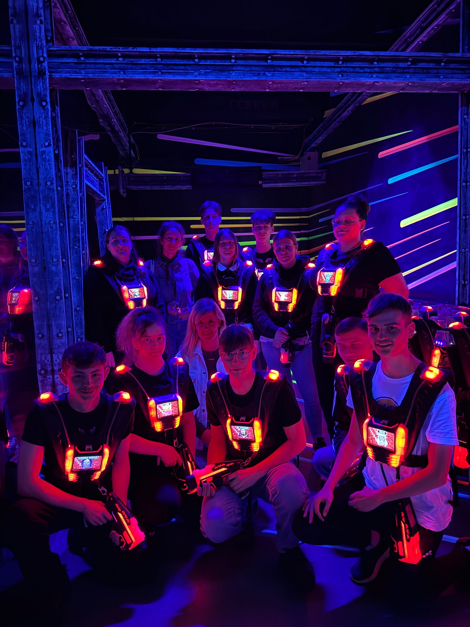 Der offizielle Tag wurde mit einer Runde Bowling abgeschlossen und wir trafen uns danach im Hostel, um „für die Nachtruhe einzukehren“. Der nächste Tag begann mit dem Checkout aus dem Hostel und dem Frühstück. Dann startete die letzte Aktivität: Lasertag. Mit Leuchtwesten als verschiedene Charaktere traten wir in zwei Zufall-Teams und drei Runden gegeneinander an.
