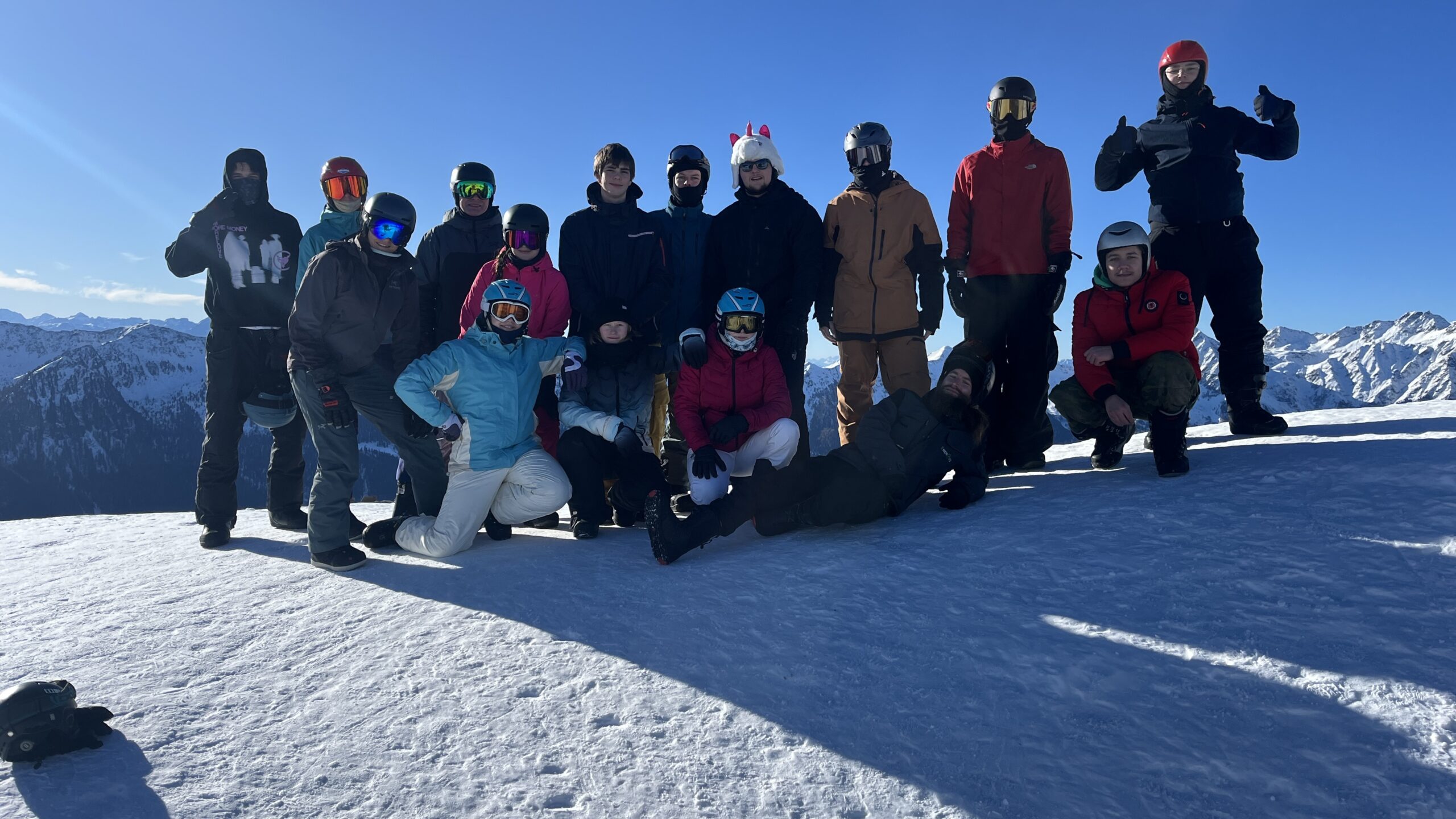 Ab Tag 3 konnte man richtige Fortschritte sehen und die ersten blauen Pisten wurden vollständig überwunden. Auch eine Gipfelfahrt war dabei, auf der wir bei traumhaftem Wetter in 2400 m Höhe einen grandiosen Ausblick auf das Gebirge und das Skigebiet erhaschen konnten.