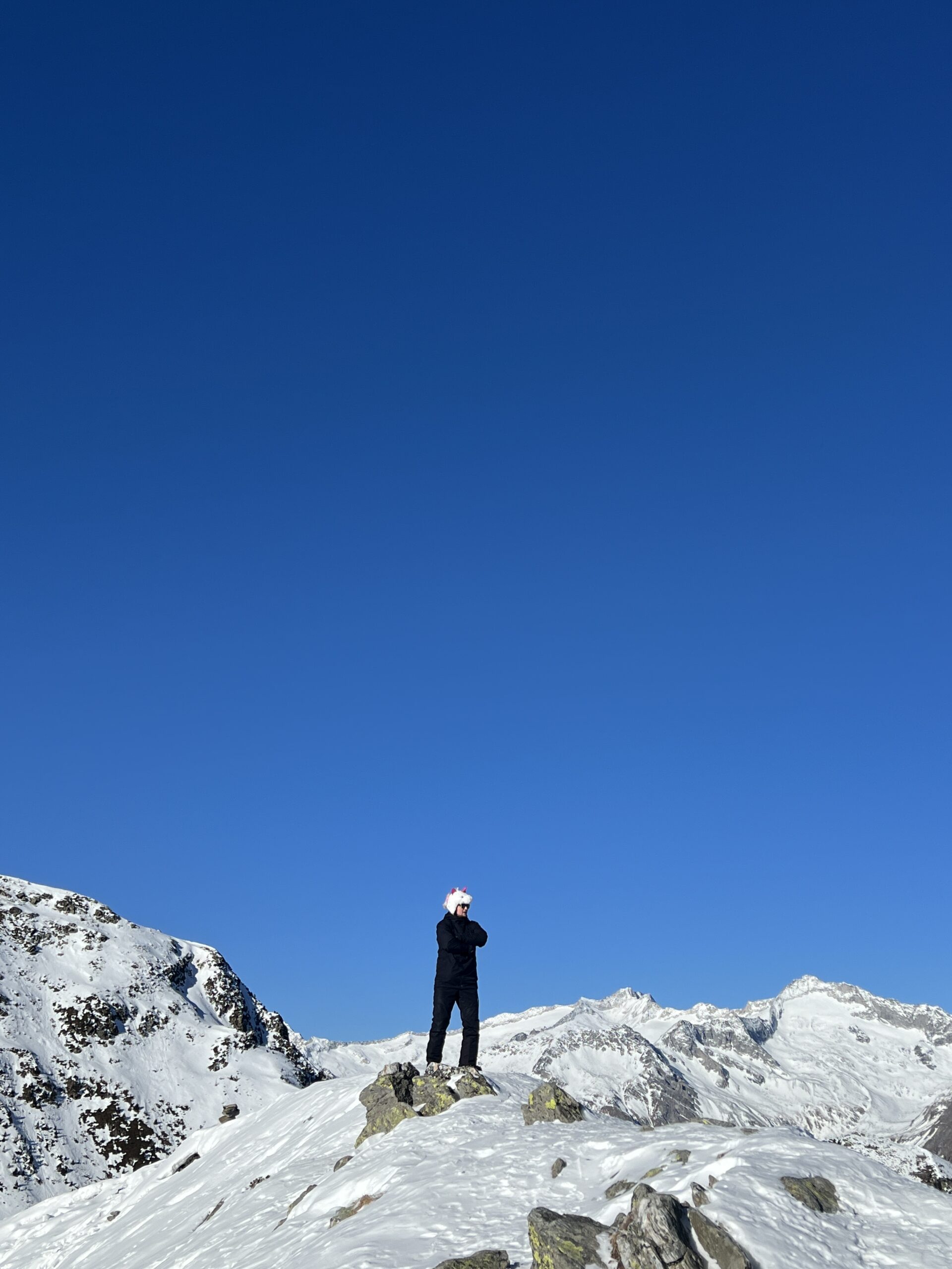 Am Tag 4 stand für die meisten ein neues Ziel auf dem Plan: Die Talabfahrt wurde als großes Finale für den letzten Tag festgesetzt. Nachdem sich die Gruppe gefunden hatte und erste Aufwärmläufe am Freitag absolviert wurden, starteten wir die Talabfahrt. Mit einer Gruppe aus Anfängern und Fortgeschrittenen fuhren wir über weite Strecken der 30-minütigen Abfahrt überraschend souverän und kamen letztendlich alle unverletzt und sicher unten an.